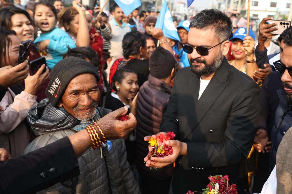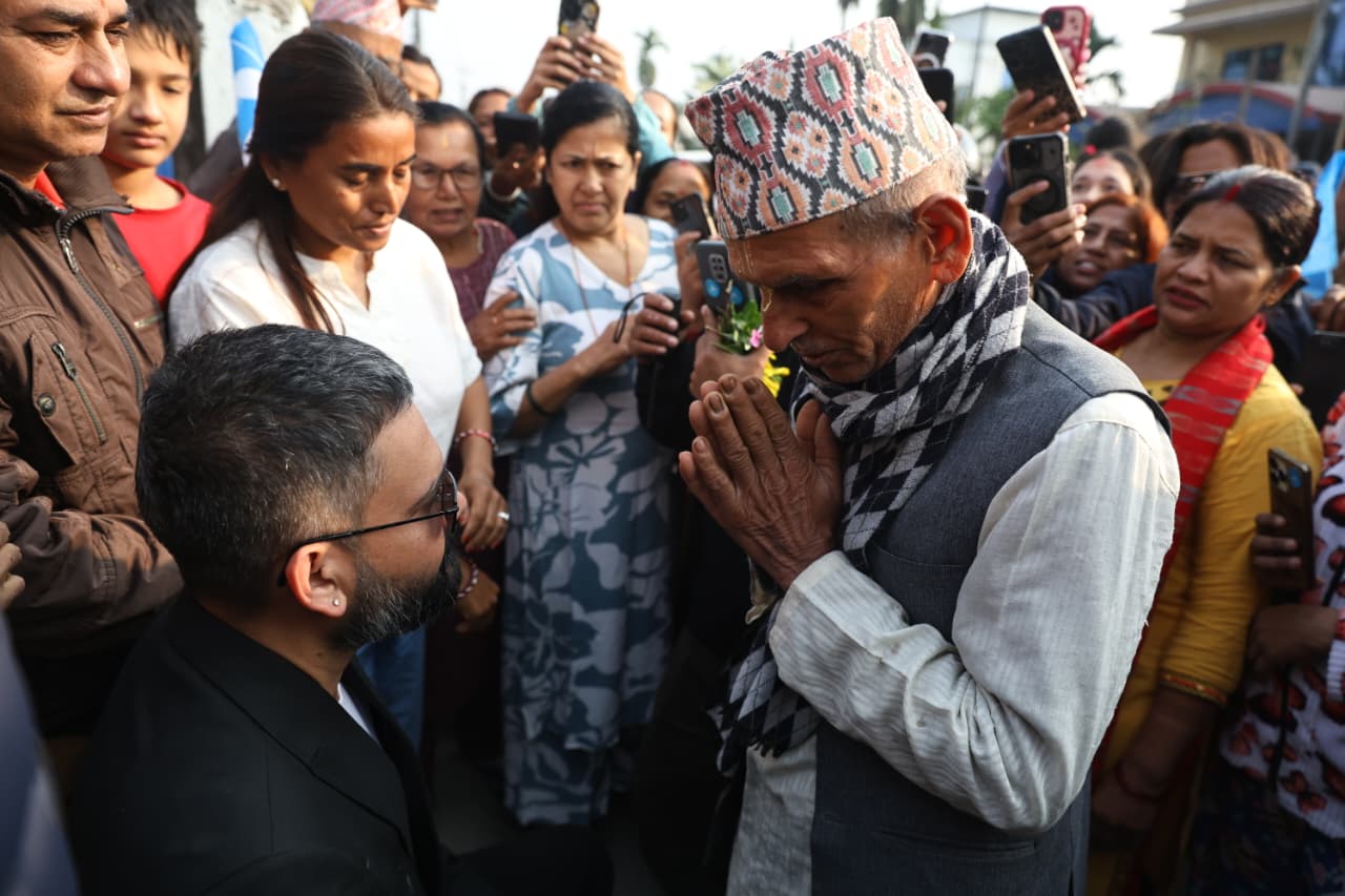 झापा–५ मा घरदैलो गर्दै मतदातासँग प्रत्यक्ष संवादमा बालेन (तस्बिर)