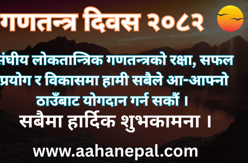 ‘शाही दमन चिरेर जनताले इतिहास लेखेको दिन हो आज । मुकुटको होइन–मुलुकको हितले स्थान पाएको दिन, सिंहासनको अभिमान तोडेर नागरिकको स्वाभिमान स्थापित भएको दिन’, उनले अघि भनेका छन्, ‘जनताको सात दशक लामो बलिदानीपूर्ण सङ्घर्षले विजय प्राप्त गरेर गणतन्त्र आर्जन गरेको दिन ।’ आज १८औं गणतन्त्र दिवस मुलुकभर विभिन्न कार्यक्रम गरी मनाइँदैछ ।